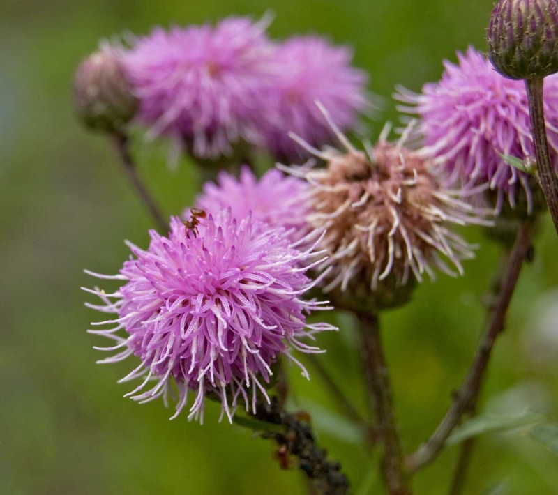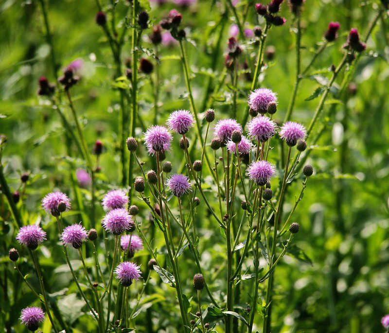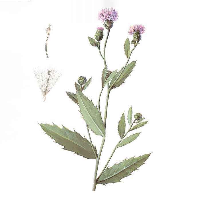 Бодяк щетинистый – корнеотпрысковый многолетний сорняк, высота стебля до 130 см. Корневая система состоит из вертикального корня и отходящих от него горизонтальных корней. Листья продолговато-ланцетные, продолговатые, ланцетные, сидячие. Цветки сиреневого цвета, собраны в корзинки. Плод – семянка.