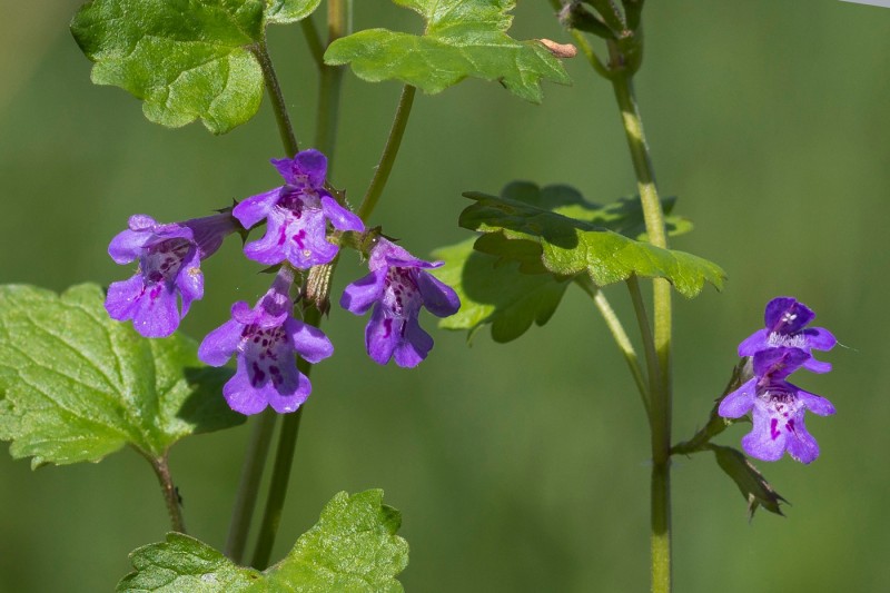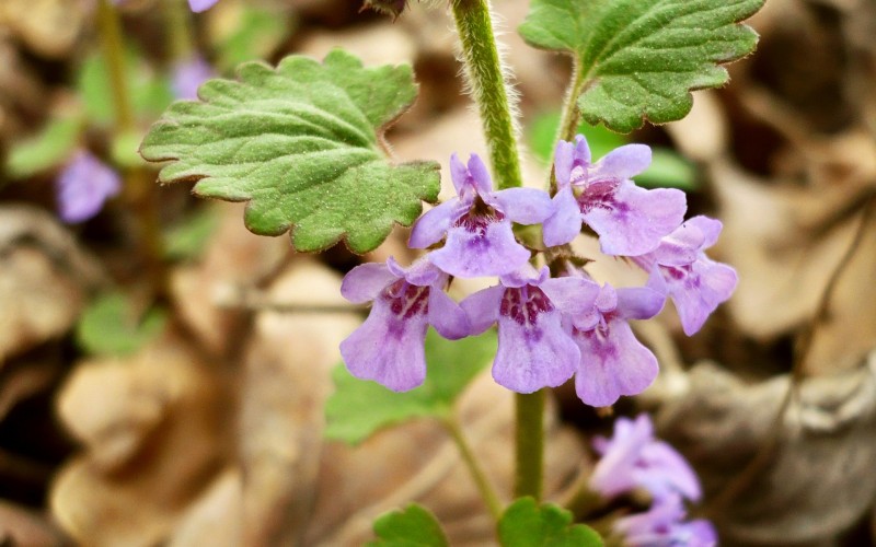 Многолетнее травянистое растение из семейства губоцветных (Lamiaceae) с ползучими укореняющимися стеблями длиной до 50 см. и приподнимающимися цветоносными побегами. Листья супротивные, округлые, с сердцевидным основанием, городчатые по краю, с длинными черешками. Цветки неправильные, двугубые, расположены в пазухах листьев. Чашечка трубчато-колокольчатая, венчик сине-лиловый, длиной 10 — 18 мм., в 2 — 3 раза длиннее чашечки, тычинок четыре, пестик один, с четырехраздельной верхней завязью и одним столбиком. Плоды распадаются на четыре орешка. Цветет с апреля до августа, плоды созревают в июне.