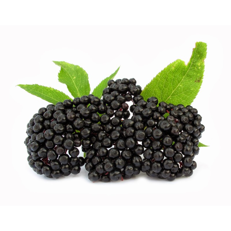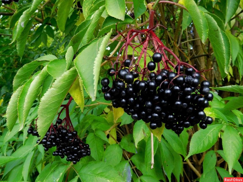 Плоды содержат сахара (глюкозу, фруктозу), органические кислоты, эфирное масло (в его составе метилвинилкетон, дамасценон, метиловые и этиловые эфиры миристиновой, олеиновой и др. кислот), гликозиды (самбуцин, хризантемин), антоцианы, флавоноиды (рутин).