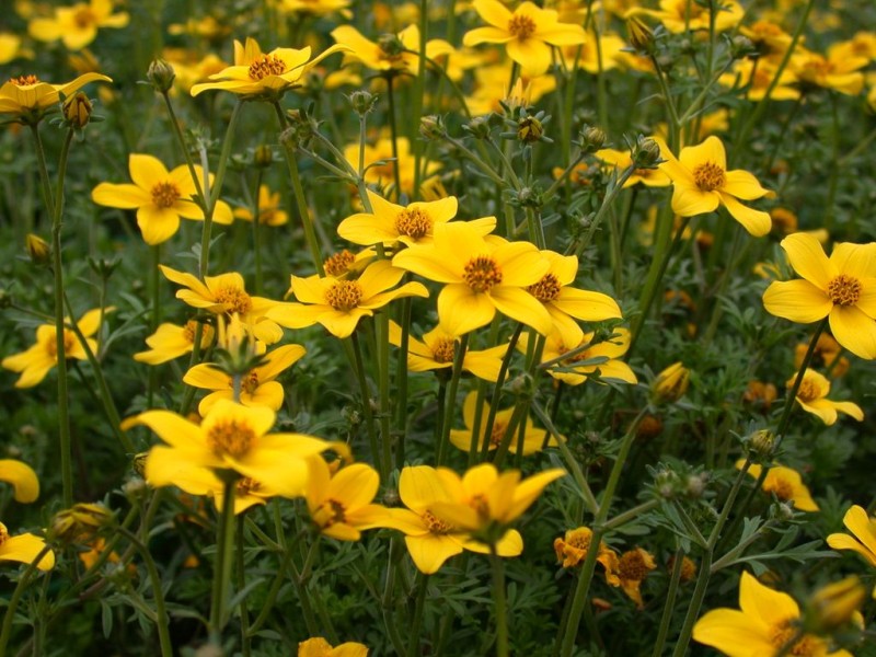 Надземная часть содержит углеводы, органические кислоты, флавоноиды и их глюкозиды, ксантофиллы (каротиноиды), эфирные масла (0,05 — 1,34%), производные ацетиленов и полиацетиленов, стерины, кумарины, тритерпеноиды, танины, жирные кислоты и кофеин. Во время цветения содержание витамина С в растении достигает 950 мг% (выше, чем в плодах черной смородины), а каротиноидов 50 — 60 мг%. Способна накапливать марганец. Из растения выделены флавоноиды: лютеолин, изокореопсин, цинарозид, бутеин, сульфуретин, сульфуреин, умбеллиферон, скополетин и эскулетин.
