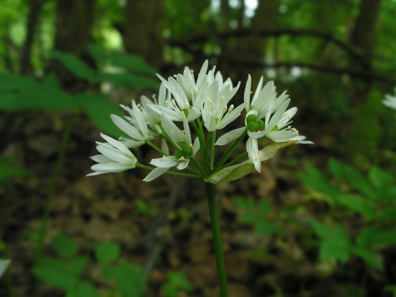 Многолетнее травянистое растение семейства луковых (Alliaceae) с удлиненной луковицей около 1 см. толщиной. Надземная часть растения состоит из двух-трех прикорневых листьев и цветочной трехгранной стрелки высотой 15 — 40 см. Листья длинночерешковые, ланцетные или продолговато-эллиптические, заостренные, длиной 10 — 20 см. и шириной 3 — 7 см. Цветки белые с 6 линейно-ланцетными лепестками, на равных цветоножках, собраны на верхушке стрелки в немногоцветковый полушаровидный зонтик с равным ему опадающим чехлом. Плод — коробочка. Цветет в мае — июне; семена созревают в конце июня — июле.