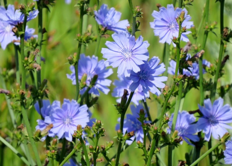 Цикорий обыкновенный принято считать сорным цветком, однако садоводы часто высаживают его в пейзажных садах и небольших солнечных цветниках на заднем плане. Его ценят за длительное цветение (с июня по начало сентября) и неприхотливость.