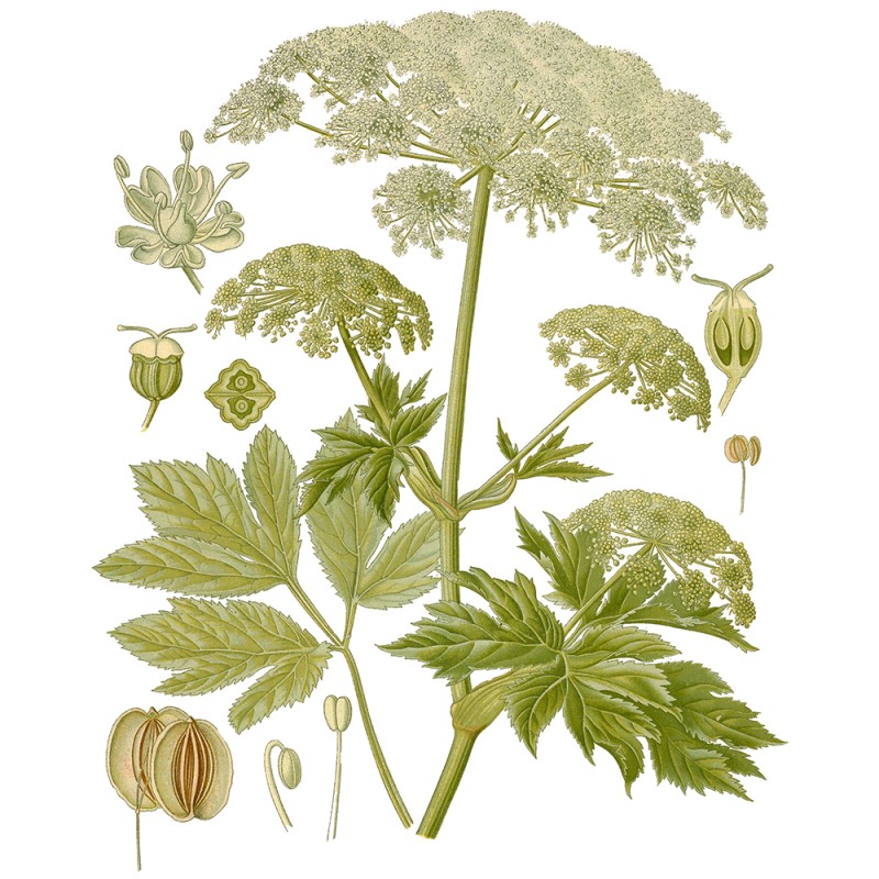 Растение содержит эфирное масло (ангеликовое), органические кислоты, витамины, дубильные и минеральные вещества.