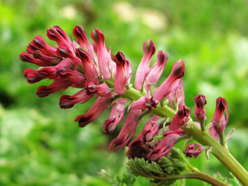 Однолетнее растение из семейства дымянковых (Fumariaceae), серовато-зеленое от воскового налета. Стебли высотой 10 — 40 см., от основания ветвистые. Листья триждыперисторассеченные на линейные дольки. Цветки зигоморфные, розовые с темной верхушкой, сидят на коротких цветоножках, собраны в пазушные кисти. Каждый цветок состоит из двух мелких чашелистиков, четырехлепестного двугубого венчика длиной 5 — 6 мм со шпорцем, двух тычинок, одного пестика. Плод — округлый орешек диаметром около 2 мм. Цветет с июня до сентября, плоды созревают в июле — октябре.