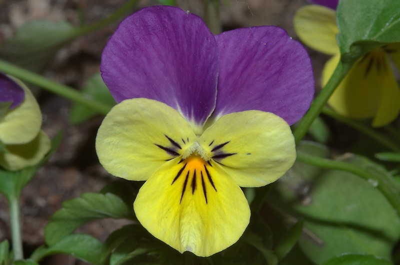Однолетнее или двулетнее травянистое растение семейства фиалковых (Violaceae) высотой 10 — 40 см. Корень тонкий, стержневой, буроватый. Стебель простой или ветвистый, прямостоячий, восходящий или почти лежачий. Листья длиной 0,5 — 7 см., шириной 0,5 — 2 см., очередные, коротковолосистые, тупозубчатые, с крупными лировидно-раздельными прилистниками. Нижние листья широкояйцевидные, черешковые, верхние — продолговатые, почти сидячие. Цветки зигоморфные, одиночные, длиной 2 — 3 см., на длинных цветоножках, с двумя прицветниками. Венчик разноцветный, крупнее чашечки, окраска его лепестков сильно варьирует. Обычно два верхних лепестка сине-фиолетовые, два боковых — сине-фиолетовые или желтые с одним-тремя темными полосками; нижний лепесток желтый или белый с желтым пятном и пятью-семью темными полосками, по краю часто фиолетовый. Плоды — продолговато-яйцевидные коробочки, при созревании растрескивающиеся по швам на три створки. Цветет с апреля до осени.