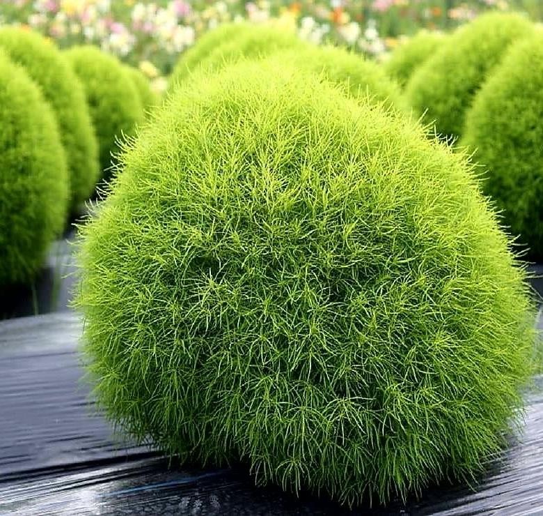 Одиночный куст кохии веничной с руки умелого флориста-декоратора вообще можно превратить в колонну, шар, яйцо, матрешку. Если на территории группа кустов, можно сделать правильный диск или вазу с цветами, возвышающимися в центре. Лучше всего будет посадить кохию венечную рядом с камнями или создать из нее стриженые композиции. Растение прекрасно подходит для оформления живых изгородей и окаймления дорожек.