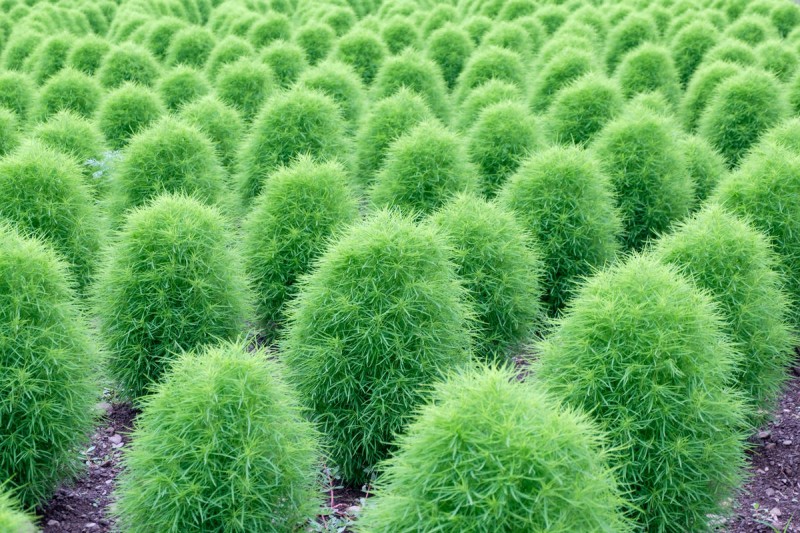 Декоративный эффект следует создавать с июня и до первых заморозков. Если говорить о цвете бассии веничной, то в течение лета она имеет изумрудно-зеленую окраску, а осенью начинает постепенно менять цвет вплоть до красного. Когда приближаются заморозки, окраска растения становится более интенсивной.