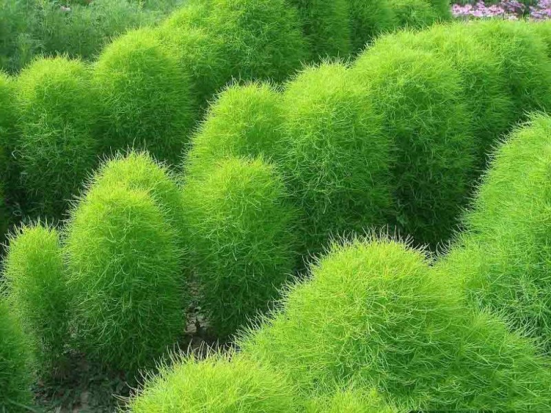 Причем каждое растение окрашивается по-своему, то становится красным, то розовым, некоторые кохии веничные принимают багряные или коричневатые тона, а другие остаются зелеными вплоть до самых заморозков. Все это к тому, что декоративный бордюр из кохии веничной, сделанный в августе-сентябре, это особенное зрелище, растение придает ему пестроту, наряд, совершенство.