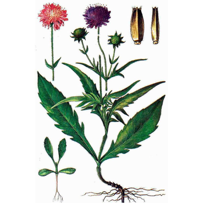 Многолетнее травянистое растение семейства ворсянковых (Dipsacaceae) высотой 40 — 80 см. Стебель прямостоячий, бороздчатый, обычно разветвленный в верхней части, покрыт волосками, наклоненными вниз. Листья супротивные, лировидные или перистораздельные, иногда цельные, обычно жестковолосистые, нижние с черешками, верхние сидячие. Цветки сиренево-лиловые, мелкие, многочисленные, с четырьмя тычинками, собраны в соцветия головки, очень похожие на козинки сложноцветных. Цветки наружного ряда резко отличаются от остальных более крупным венчиком. Венчик воронковидный, из пяти сросшихся лепестков. Листочки обертки ланцетные, заостренные, по краю реснитчатые. Плоды — продолговатояйцевидные семянки длиной 5 — 6 мм и толщиной 2 мм. Цветет с июня до поздней осени, плоды созревают в августе — октябре.