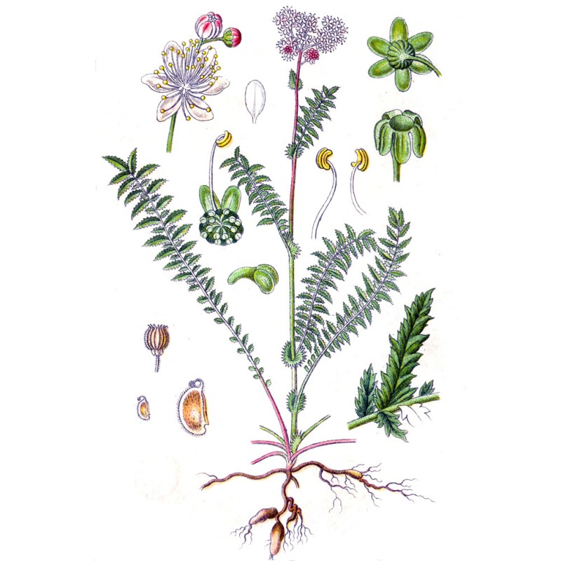 Многолетнее травянистое растение семейства розоцветных (Rosaceae) высотой до 80 см., с коротким корневищем и корнями, имеющими округлые или веретеновидные утолщения («орешки»). Стебли простые, слабо олиственные. Листья в очертании ланцетные прерывисто-перистые, обычно с 15 — 25 парами боковых, относительно крупных, продолговатых листочков, перисто-зубчатых или глубоко надрезанных, и сидящими между ними парами мелких листочков; стеблевые листья сходны с прикорневыми, но мельче и с меньшим числом пар листочков. Листья с обеих сторон зеленые, сверху голые, снизу по жилкам несколько волосистые. Цветки белые или бледно-розовые, с шестью лепестками, собраны в верхушечное щитковидно-метельчатое соцветие. Тычинки обычно по длине равны лепесткам или несколько длиннее их. Плоды — многолистовки, состоящие из 9 — 10 нераскрывающихся односемянных прямых листовок. Цветет в мае — июне; плодоносит в июле — августе.