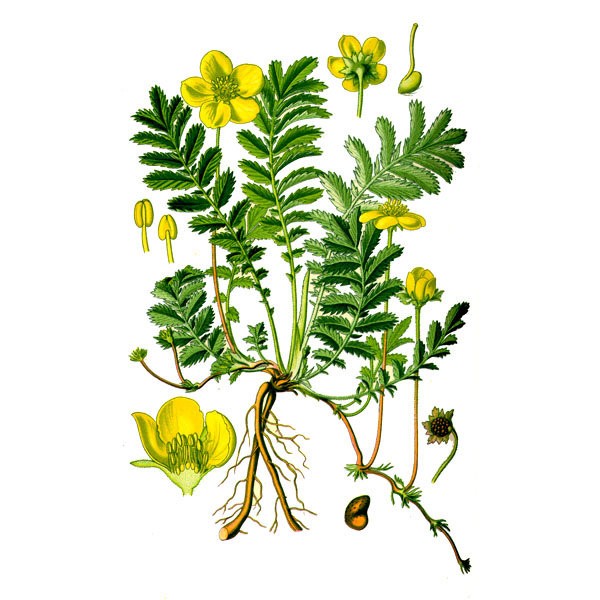 В народной медицине лечение лапчаткой гусиной очень популярно, поскольку она имеет широкий спектр терапевтических свойств. Лапчатка гусиная обладает болеутоляющим, вяжущим, кровоостанавливающим и кровоочистительным действием, повышает диурез, стимулирует выделение желудочного сока и желчи, регулирует функциональную деятельность толстой кишки и устраняет запоры. Спазмолитическая активность растения подтверждена фармакологическими исследованиями. Характерно, что расслабляющее действие препаратов лапчатки гусиной распространяется в первую очередь на гладкую мускулатуру пищеварительного тракта и матки, меньше на желчевыводящие пути и совсем не распространяется на органы мочевыделительной и сердечно-сосудистой систем.