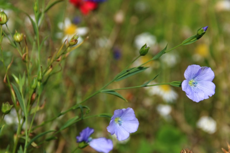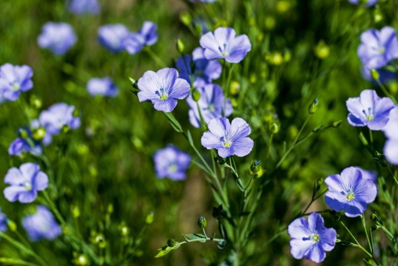 Из стеблей льна-долгунца получают льняные волокна, из которых прядут пряжу для льняного полотна.
