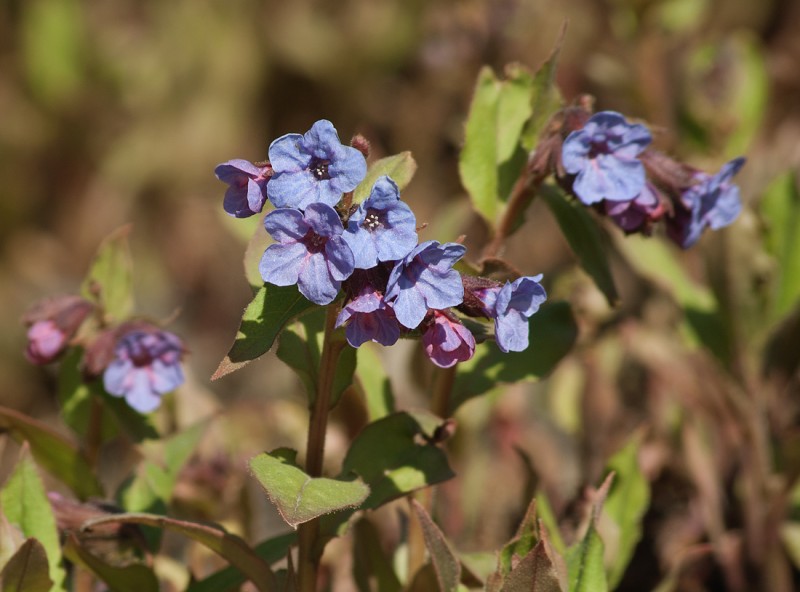 Многолетнее травянистое растение семейства бурачниковых (Boraginaceae) с толстым бурым корневищем. Стебли слегка ребристые, до 30 см. высоты. Листья очередные, шершавые от волосков; верхние стеблевые — продолговатояйцевидные, к основанию суженные, сидячие; нижние стеблевые — яйцевидные суженные в короткий ширококрылатый черешок. Прикорневые листья, развивающиеся только после цветения, — широкояйцевидные, вверху заостренные, при основании сердцевидные, сразу суженные в узкокрылатый длинный черешок. Цветки воронковидные, с длиной трубкой и пятилопастным отгибом, в начале цветения розовые, потом синие, собраны на верхушке стеблей в малоцветковые рыхлые завитки. Плоды сухие дробные, распадающиеся на 4 темных орешка. Цветет в апреле — мае.