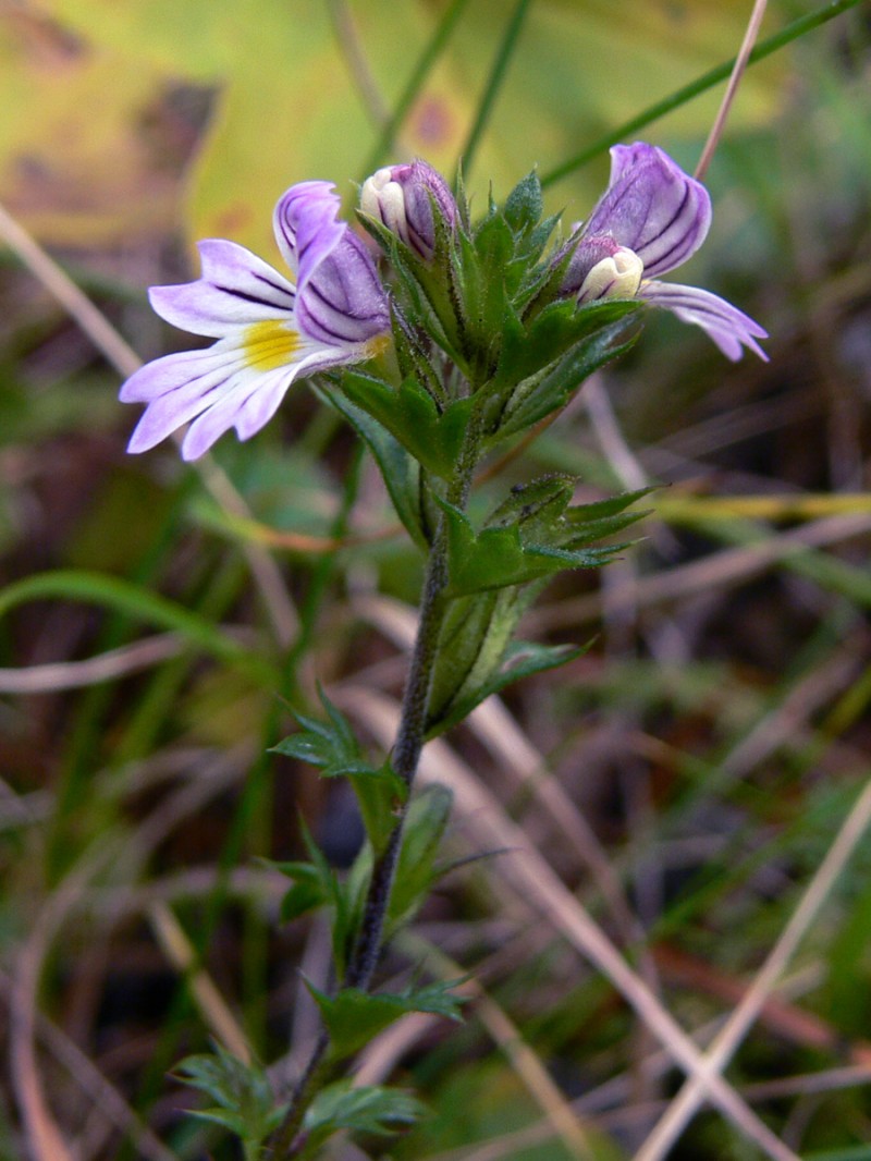 Однолетнее растение семейства норичниковых (Scrophulariaceae) высотой 5 — 35 см., с прямостоячим, обычно ветвистым, красноватым или буроватым стеблем, покрытым простыми курчавыми волосками, направленными вниз. Нижние листья супротивные, средние и верхние почти супротивные, клиновидно-яйцевидные, туповатые, с 5 — 7 острыми зубцами с каждой стороны (ко времени цветения растения в нижней части лишены листьев); прицветные листья очередные, округлые, с шириной больше высоты, с острыми зубцами. Все листья покрыты короткими стебельчатыми железистыми волосками, в особенности по жилкам и по краю пластинки, а также прямыми щетинками; количественное соотношение железистых и щетинистых волосков у разных особей сильно варьирует. Цветки собраны в верхушечное колосовидное густое соцветие, сильно удлиняющееся к концу цветения. Чашечка опушена так же, как и листья; зубцы чашечки острые, слегка превышают плоды — коробочки. Венчик до 10 мм. длиной, белый, бледно-фиолетовый или голубой, с желтым пятном на нижней губе и с голубыми или пурпурными полосками. Коробочка слегка выемчатая на верхушке, длинно реснитчатая по краю, обычно слегка короче чашечки. Цветет в июле — сентябре; плодоносит начиная с конца июля.