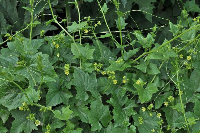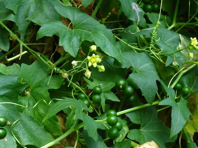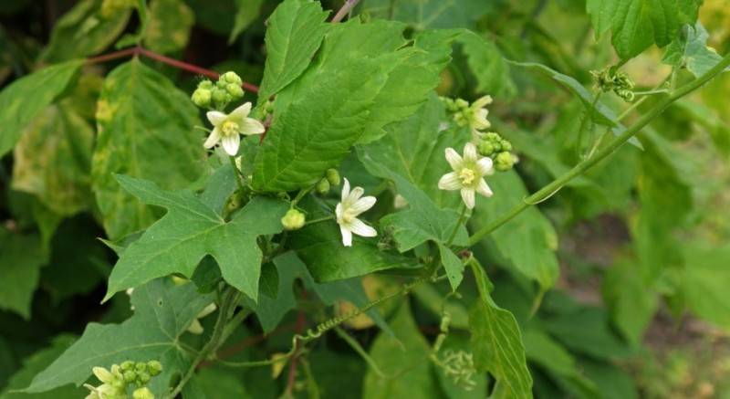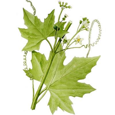 Многолетнее травянистое однодомное растение из семейства тыквенных (Cucurbitaccae) с тонкими вьющимися стеблями длиной 2 — 7 м. Корень толстый, достигающий толщины человеческой руки, внутри белый. Листья в очертании сердцевидные, яйцевидные или треугольно-яйцевидные, при основании более или менее глубоко выемчатые, 5 — 7-лопастные; лопасти треугольные или яйцевидные, неравномерно-зубчатые или волнистые. В пазухах листьев развиваются длинные, спирально закрученные усики. Цветки раздельнополые, с двойным 5-членным околоцветником. Мужские цветки мелкие с 5 тычинками, бледно-желтые с зелеными жилками, собраны по 7 — 15 в кистях, расположенных в верхней части стебля. Женские — такого же цвета, собраны в щитковидные или зонтиковидные соцветия, располагающиеся обычно в нижней части стеблей. Плоды — черные, шаровидные ягоды диаметром 7 — 10 мм. Цветет в мае — июле, плоды созревают в июле — сентябре.