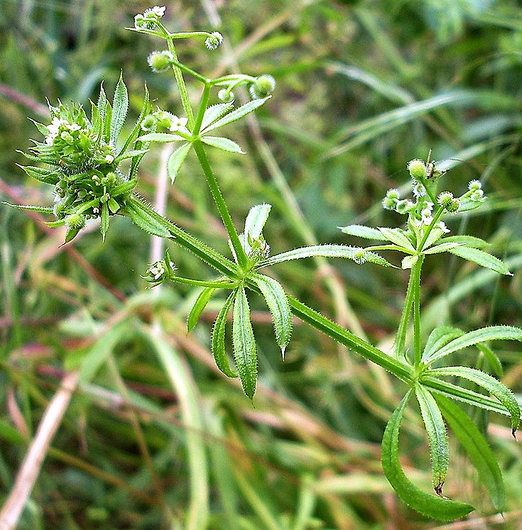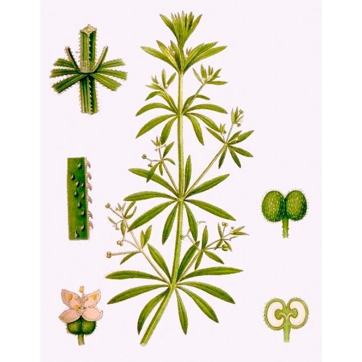 Однолетнее растение из семейства мареновых (Rubiaceae). Стебли лежачие или лазящие, длиной 50 — 200 см., крепкие, четырехгранные, острошероховатые от обращенных книзу шипиков. Листья по 6 — 8 в мутовках, ланцетнолинейные, остроконечные, по краю и снизу по средней жилке острошероховатые. Цветки белые, мелкие, с 4 лепестками, собраны в пазушные полузонтики. Плоды шаровидные, густо покрыты крючковидными щетинками. Цветет в мае — сентябре; плоды созревают с июля.