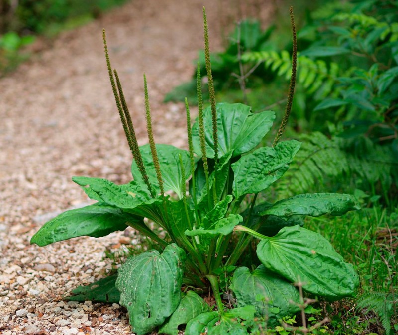 Из молодых листьев подорожника готовят супы, щи, салаты.