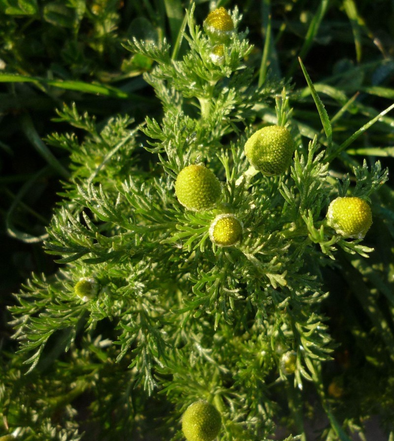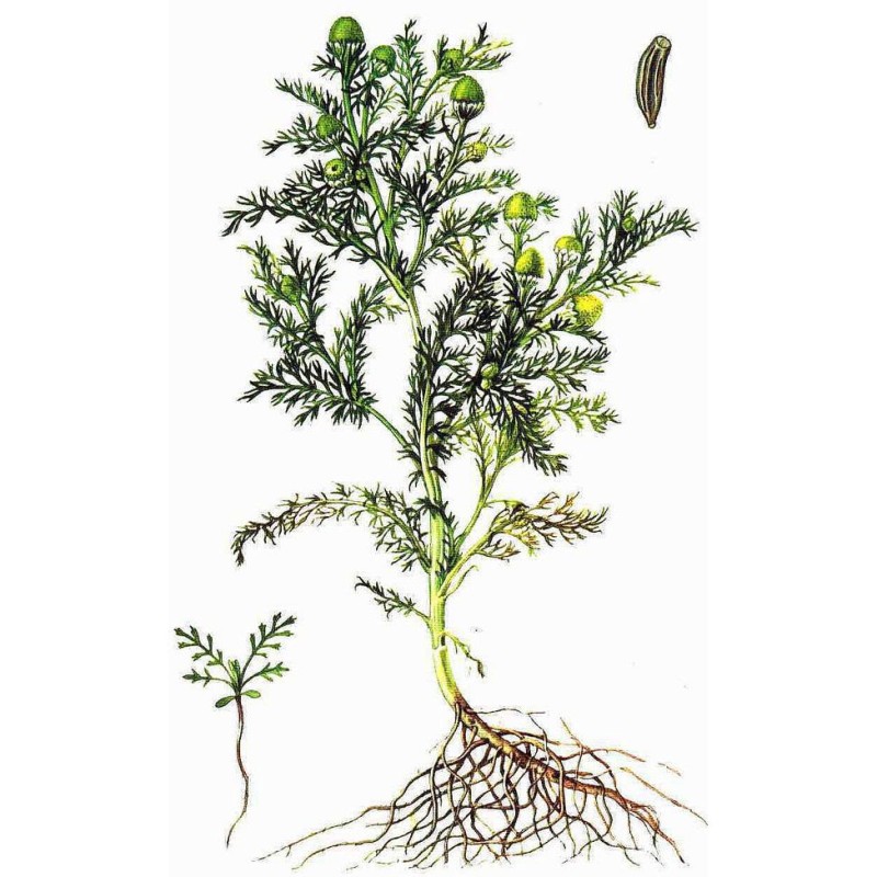 Однолетнее растение семейства сложноцветных (Asteraceae) высотой от 8 до 30 см. Стебель прямостоячий, полый, разветвленный в верхней части. Листья дважды или трижды перисторассеченные. Корзинки на коротких утолщенных ножках, образуют верхушечное общее щитковидное соцветие. Листочки обертки яйцевидные, с перепончатым краем, тупые. Цветоложе удлиненноконическое, полое. Все цветки в корзинке только четырехзубчатые, трубчатые, желто-зеленые (краевые ложноязычковые цветки отсутствуют). Плоды — продолговатые семянки с тремя тонкими ребрами, без хохолка, Цветет с июня до октября, семянки созревают с июля до поздней осени. Все растение (особенно соцветия) имеет сильный характерный запах.