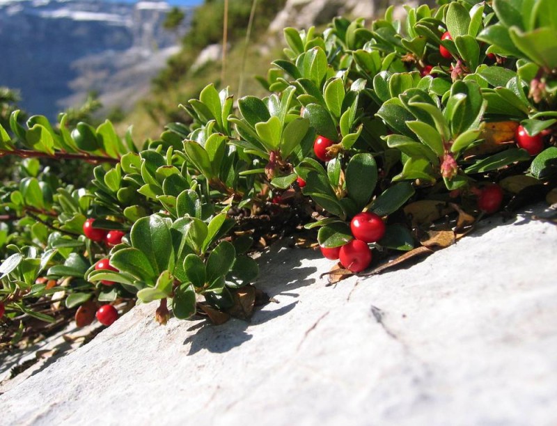 Вечнозеленый кустарничек из семейства вересковых (Ericaceae). Стебли стелющиеся, красноватые, длиной до 3 м. Листья удлиненно-обратнояйцевидные, цельнокрайние, кожистые, очередные, сверху темно-зеленые, блестящие, снизу более светлые (в отличие от брусники без бурых железок), с обеих сторон с ясной сетью жилок. Цветки розоватые, кувшинчатые, длиной 5 — 7 мм., собраны по 1 — 7 на концах ветвей в короткие поникающие кисти. Плоды — шарлахово-красные, ягодообразные костянки, диаметром 6 — 8 мм. Мякоть плода мучнистая, безвкусная, с 5 косточками. Цветет в мае — июне; плоды созревают в августе. Внешне растение очень похоже на бруснику.