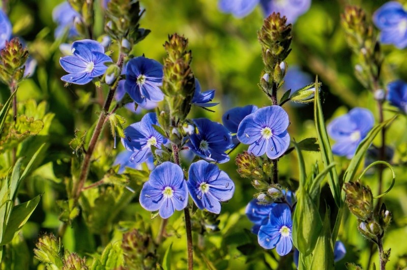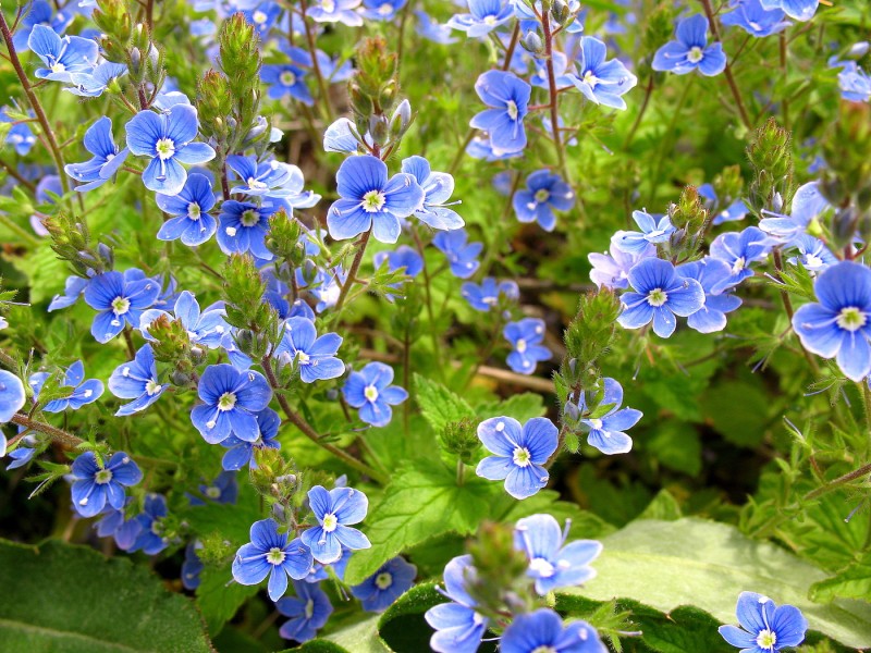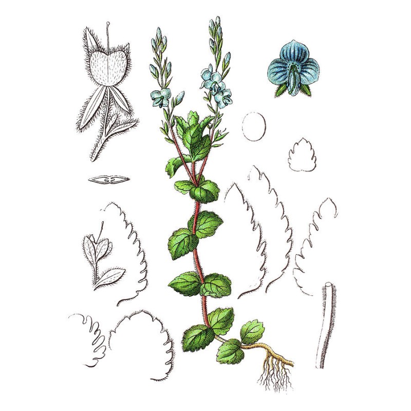 Многолетнее травянистое растение семейства норичниковых (Scrophtulariaceae), с ползучим корневищем и распростертыми, приподнимающимися или прямостоячими стеблями высотой 10 — 40 см. Листья длиной 1,5 — 3 см., округло- или продолговато-яйцевидные, морщинистые, по краям крупногородчатые или зубчатые, мягко опушенные, как и стебли. Цветки собраны в супротивные малоцветковые кисти в пазухах верхних пар листьев. Чашечка четырехраздельная, с ланцетными долями, опушенная, по краям реснитчатая, вдвое короче венчика. Венчик ярко-голубой, до 13 мм. в диаметре, с тремя широкими округлыми или почковидными долями и одной (нижней) яйцевиднопродолговатой, в 2 — 3 раза уже других. Тычинки короче венчика, с белыми нитями. Плоды — трехгранно-обратнояйцевидные сплюснутые коробочки, в 1,5 — 2 раза короче чашечки. Цветет с мая до августа, плоды созревают в июле — сентябре.