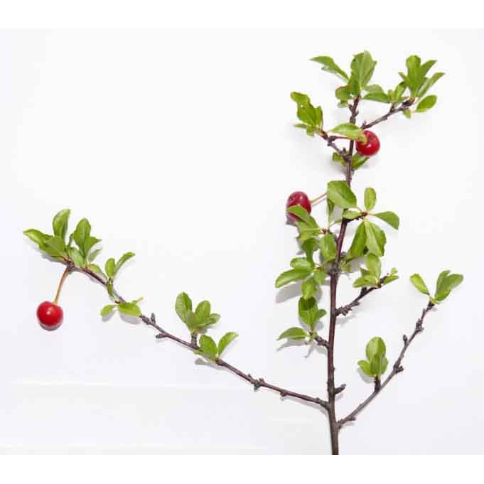 Плод — округлая, яйцевидная или грушевидная костянка до 2,5 см. в диаметре, розового, красного или почти чёрного цвета. Эндокарпий гладкий. Съедобна, обладает кисло-сладким вкусом.