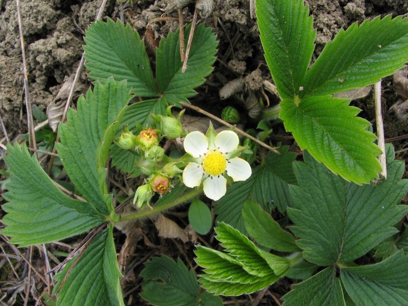 Плод — многоорешек, образующийся из разрастающегося, сросшегося с чашечкой цветоложа, в мякоть которого погружены мелкие орешки. Такой плод часто называют «земляничиной».