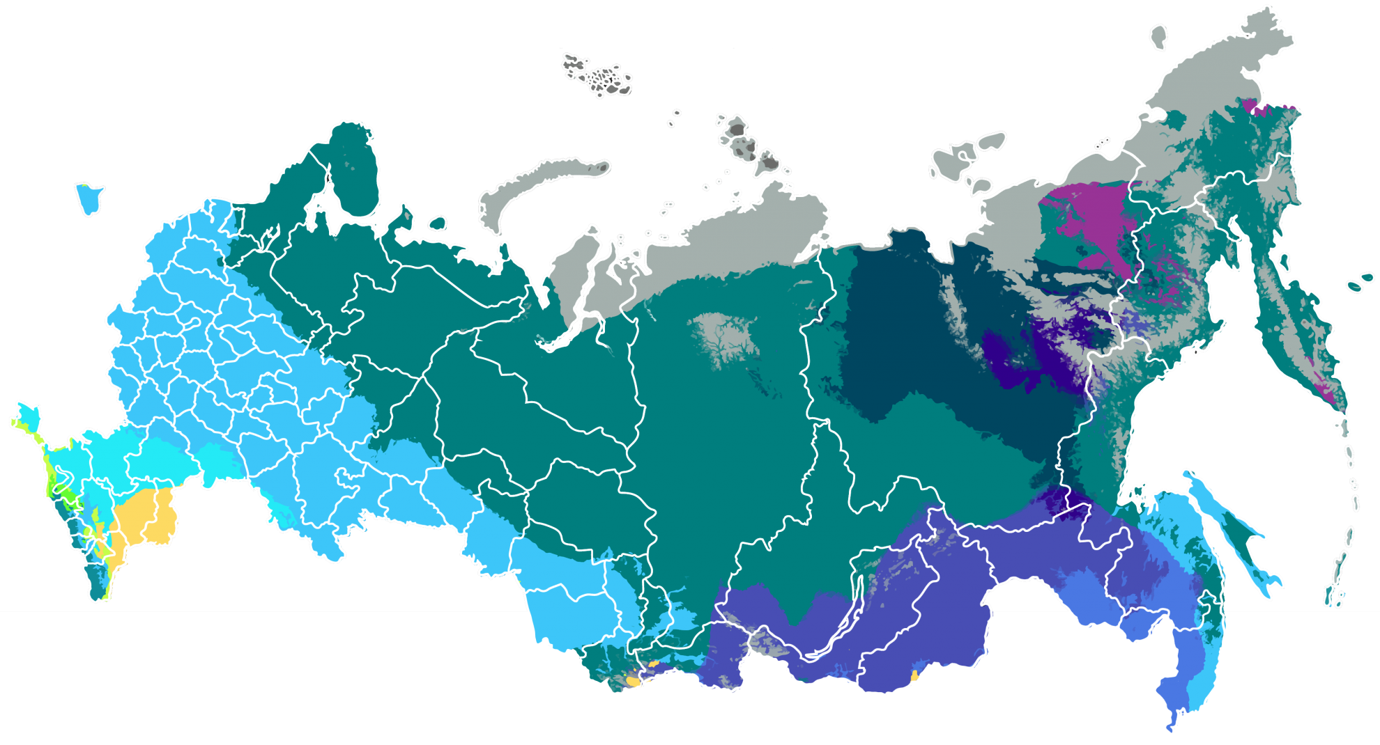 Схема климатических зон для России